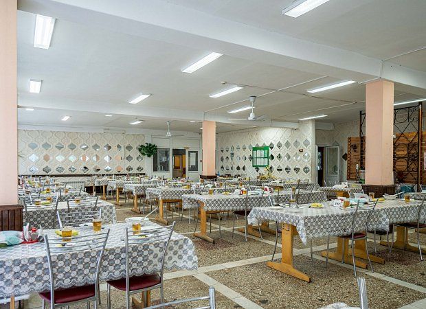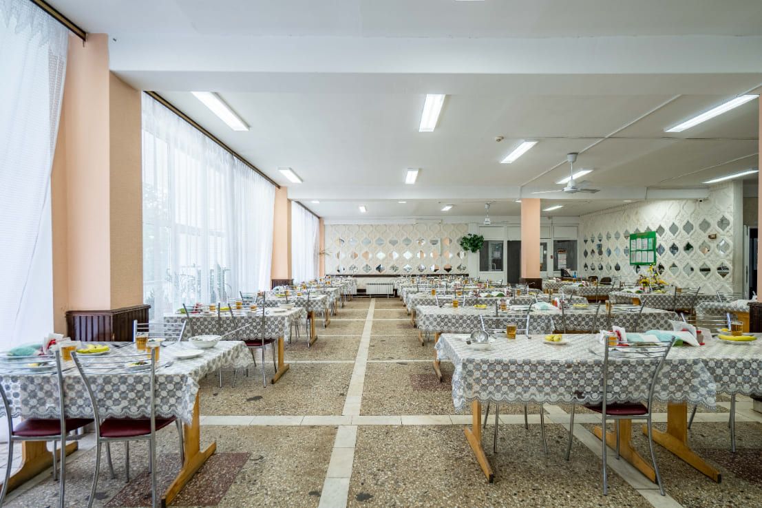 Столовая санатория находится на 2-м этаже двухэтажного корпуса и состоит из трех залов. Организовано 5-и разовое питание по системе «меню-заказ» (три основных приема пищи (завтрак, обед, ужин) и легкий полдник и вечерним приемом кефира). Бланк заказа предоставляют гостям при заезде. Системе питания санатория придается большое значение, ведь правильное и сбалансированное питание – залог успеха в общем оздоровительном процессе.